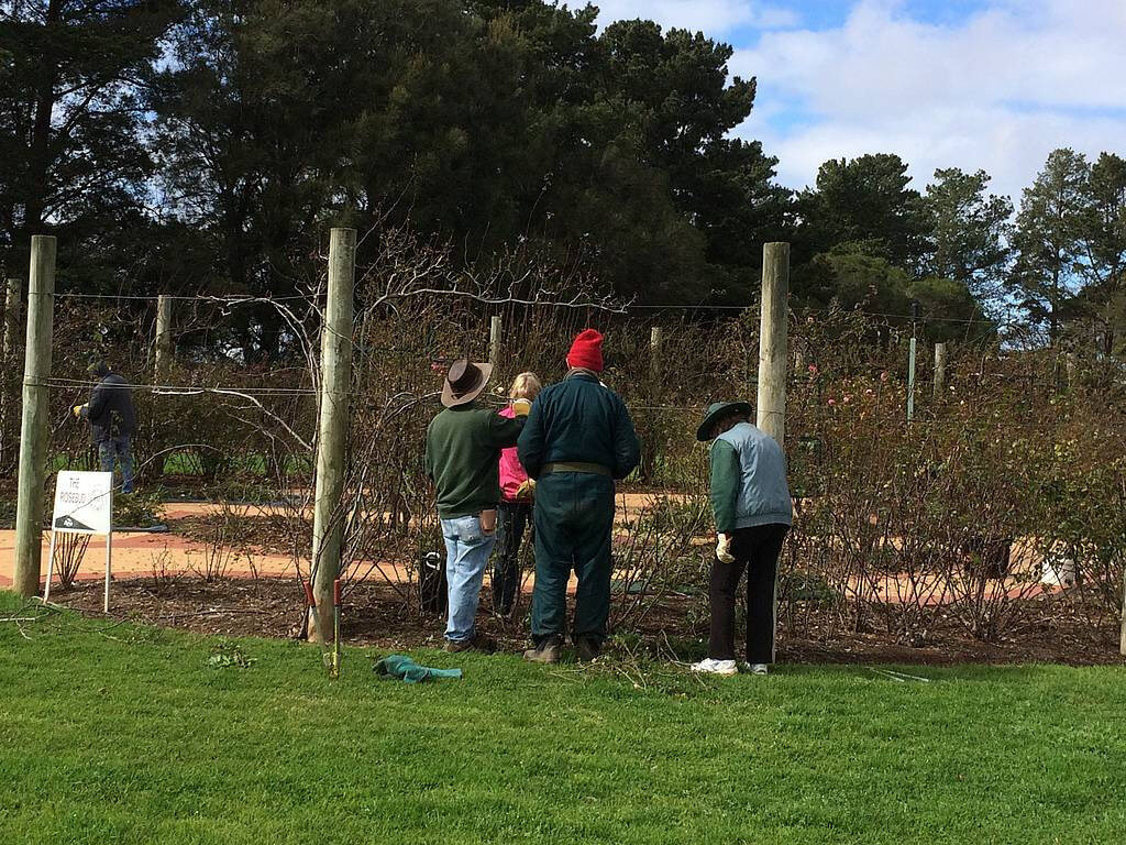 We began in Petal B in June and are now we have finished the Tudor Rose. This includes not just the beds of bush roses but also, Festoons, Tripods, Weepers, Arches and Avenues. The Heritage border is getting its fair share of attention too. New roses are being planted there to fill spaces as well. The Australian Leaf is not missing out either. Every team knows what to do and they do it! The cooperation is magnificent. The Bud is usually left till last but by the time we get to it we are so confident and fast that the roses all but dodge! The birds don’t dodge though as they consider themselves part of the team. They think we are just there to stir up the insects for them.
