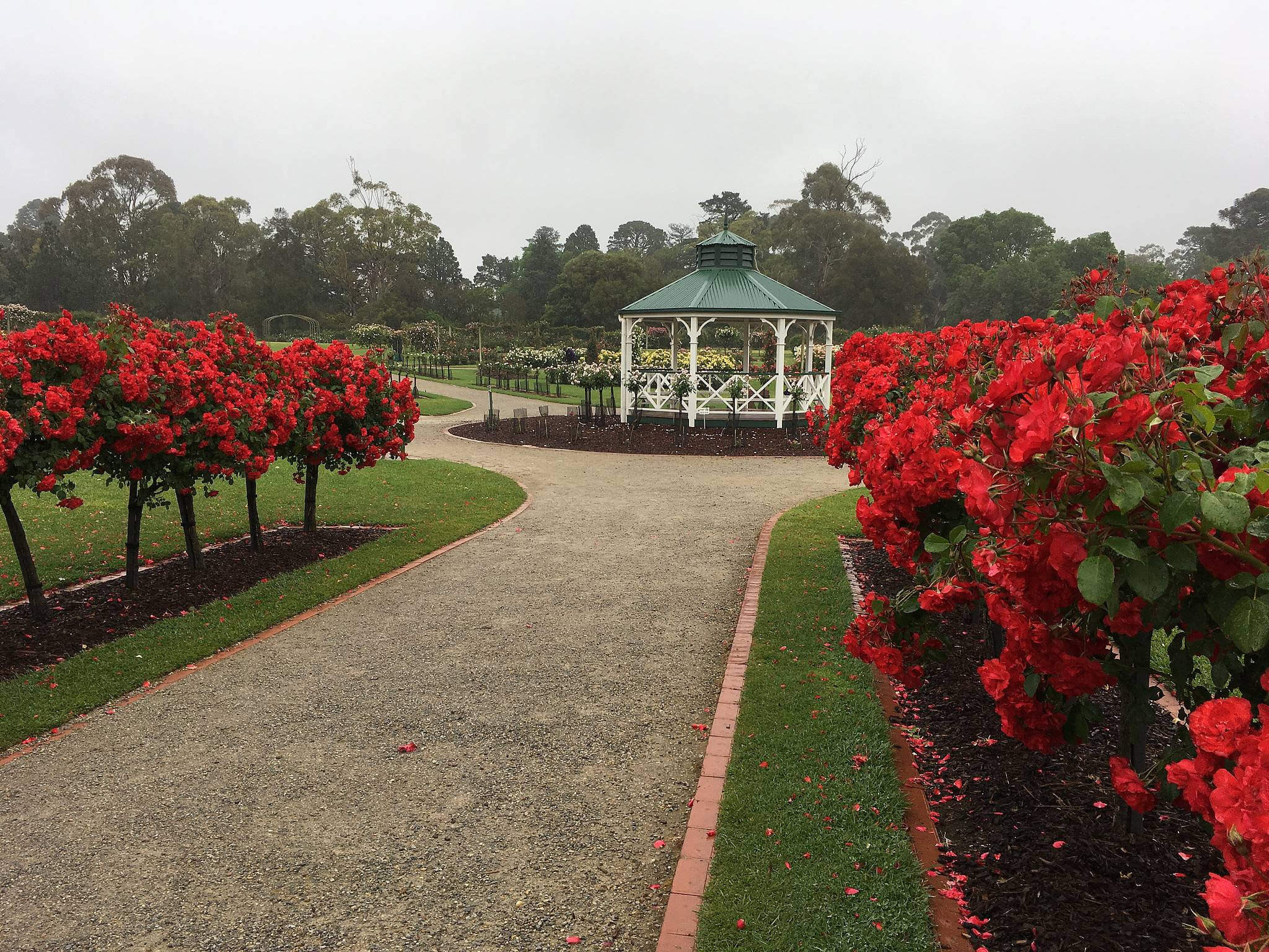 From Melbourne: Victoria State Rose Garden is located 35 kilometres west of Melbourne’s city centre, on the Princes Freeway. It is a short 30-minute drive from the city over the Westgate Bridge or via the Geelong Road. Take the Werribee / Werribee South exit to K Road.( Exit 19, C108 )